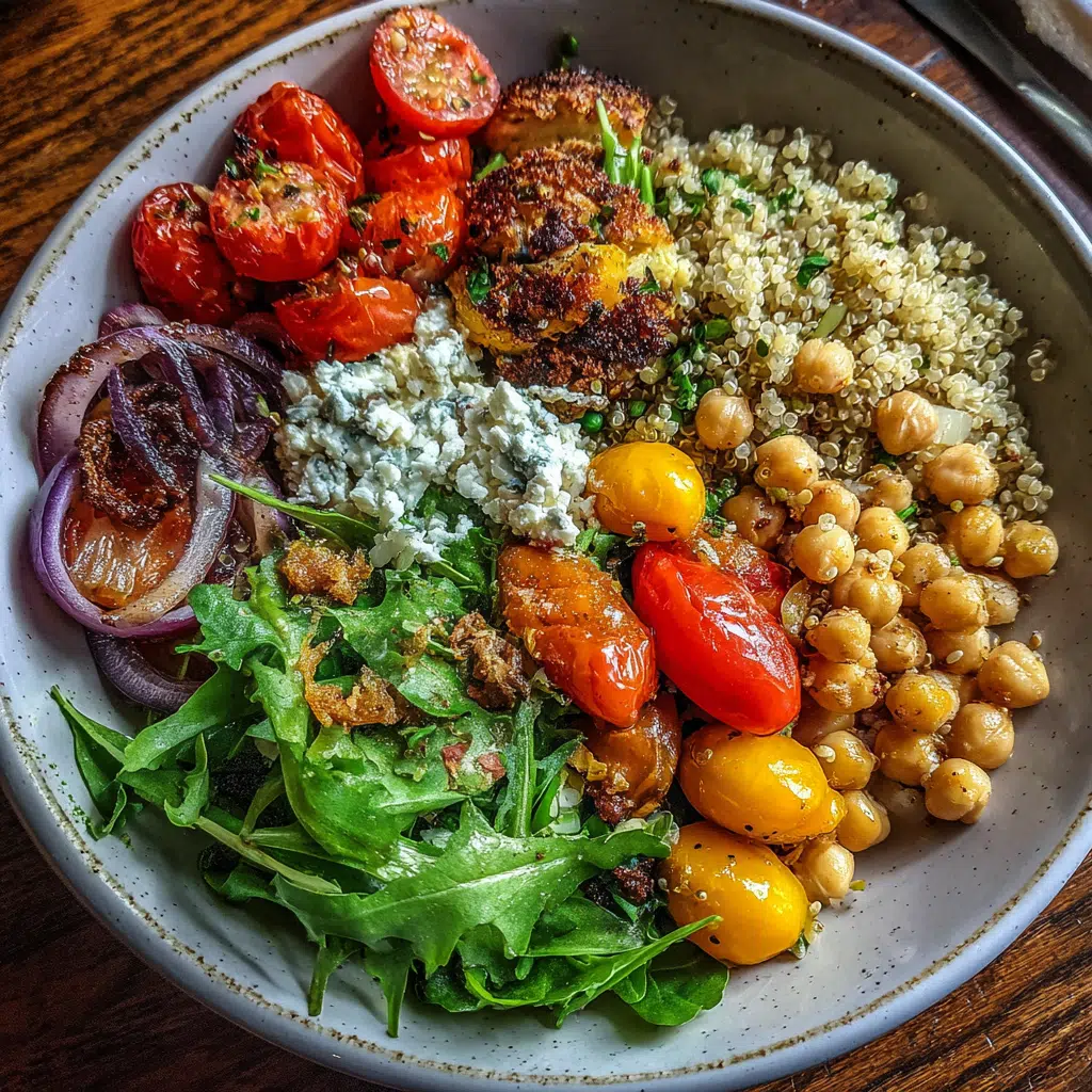 What’s the best way to reheat my Mediterranean Quinoa Bowl? For best results, reheat components separately in the microwave (1-2 minutes) or enjoy cold as a grain salad. If reheating together, add a splash of water or broth to prevent drying out.