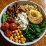 There you have it everything you need to master the Mediterranean Quinoa Bowl, a winter veggie lunch that’s become my cold-weather hero. This recipe proves that healthy eating doesn’t have to be complicated or boring. With simple techniques, quality ingredients, and a little Mediterranean magic, you can transform humble winter vegetables and quinoa into something truly special.