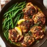 A quick and delightful meal combining juicy chicken thighs with crisp-tender green beans, all coated in rich garlic butter.